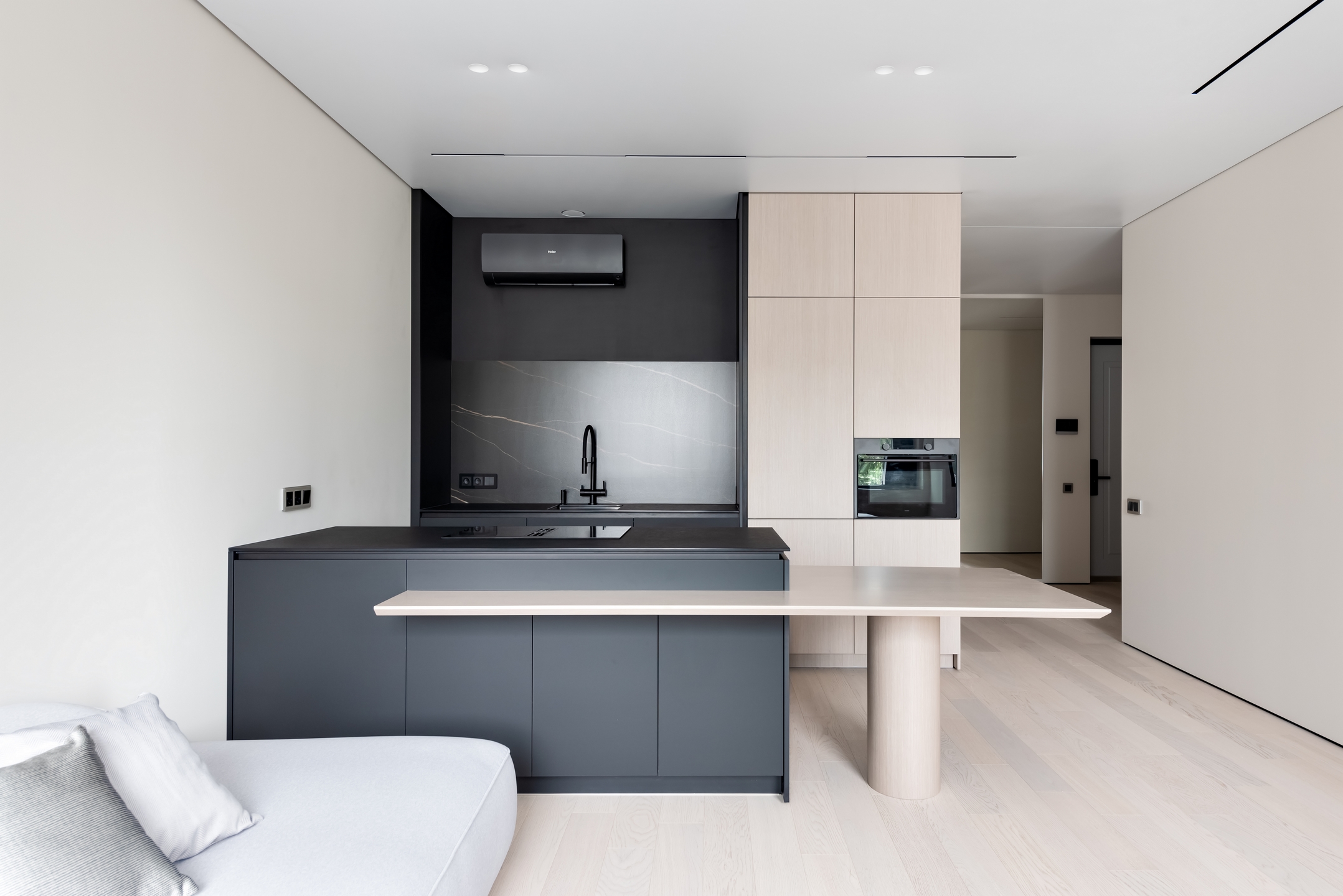 Осуществляем выезды на объект в процессе ремонта, чтобы согласовать с отделочными бригадами все высоты и опуски для принудительных систем вентиляции, встроенной мебели, освещения.