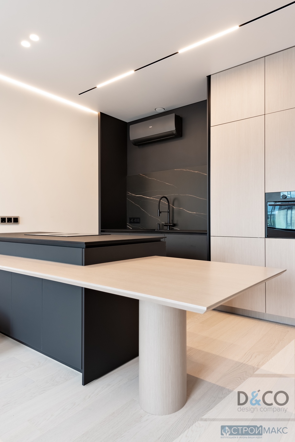 Он такой один. Нереально классный потолок с переходом уровня и световыми линиями. Воздушный, объёмный, светлый, стильный. Выделяет зону гостиной и делает её центром притяжения не только взглядов. Переход уровня выполнен с…