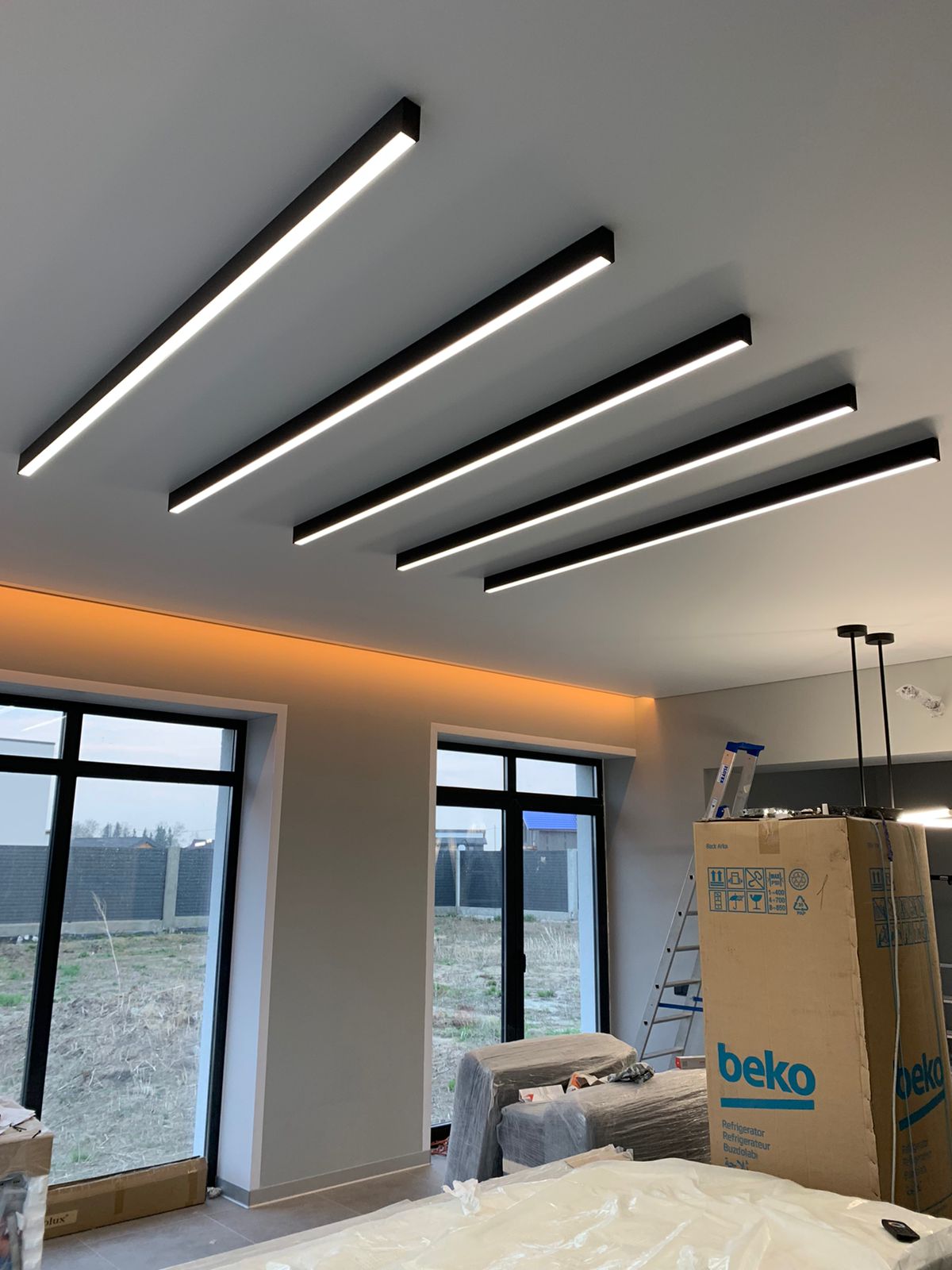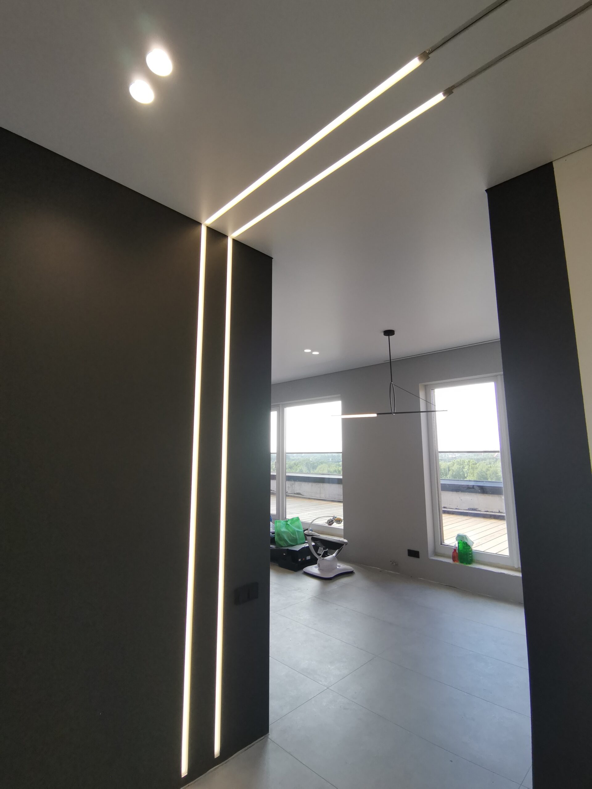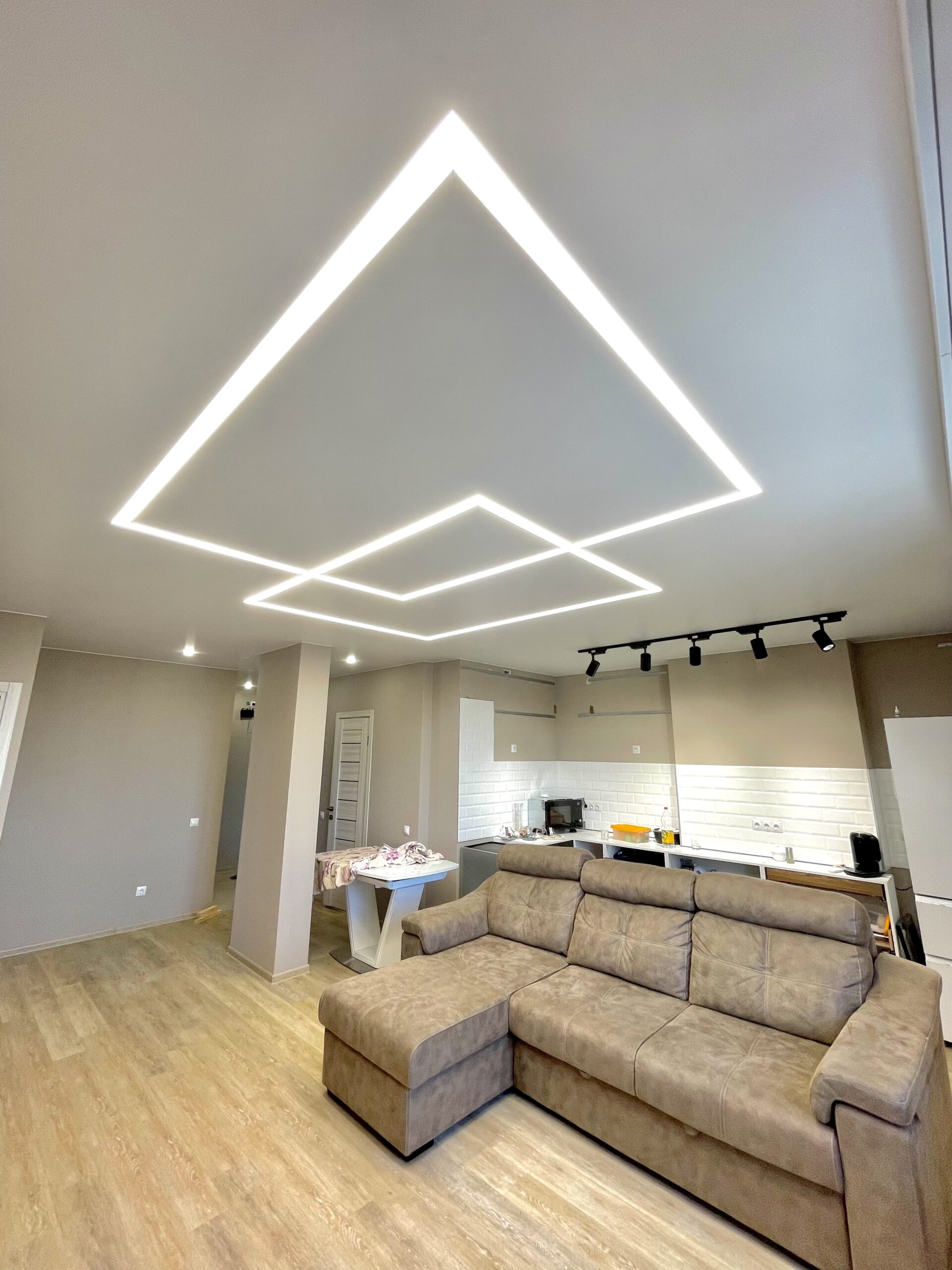 • Светодизайн (треки, линии, парящие профили).