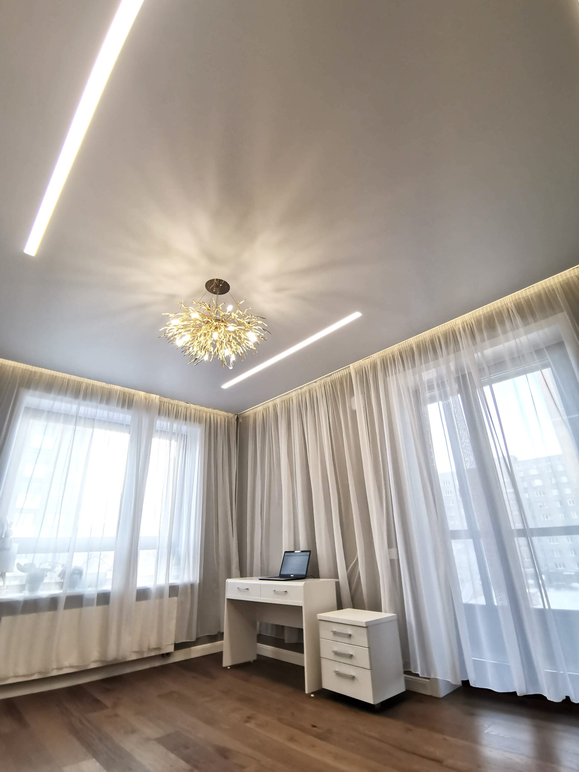 Световые линии натяжных потолков — это современное и стильное решение для создания уникального освещения в интерьере. Они позволяют эффективно зонировать пространство, придавая помещению особую атмосферу. Световые линии могут быть использованы для выделения отдельных частей потолка, создания плавных переходов света или для акцентирования внимания на деталях интерьера.
