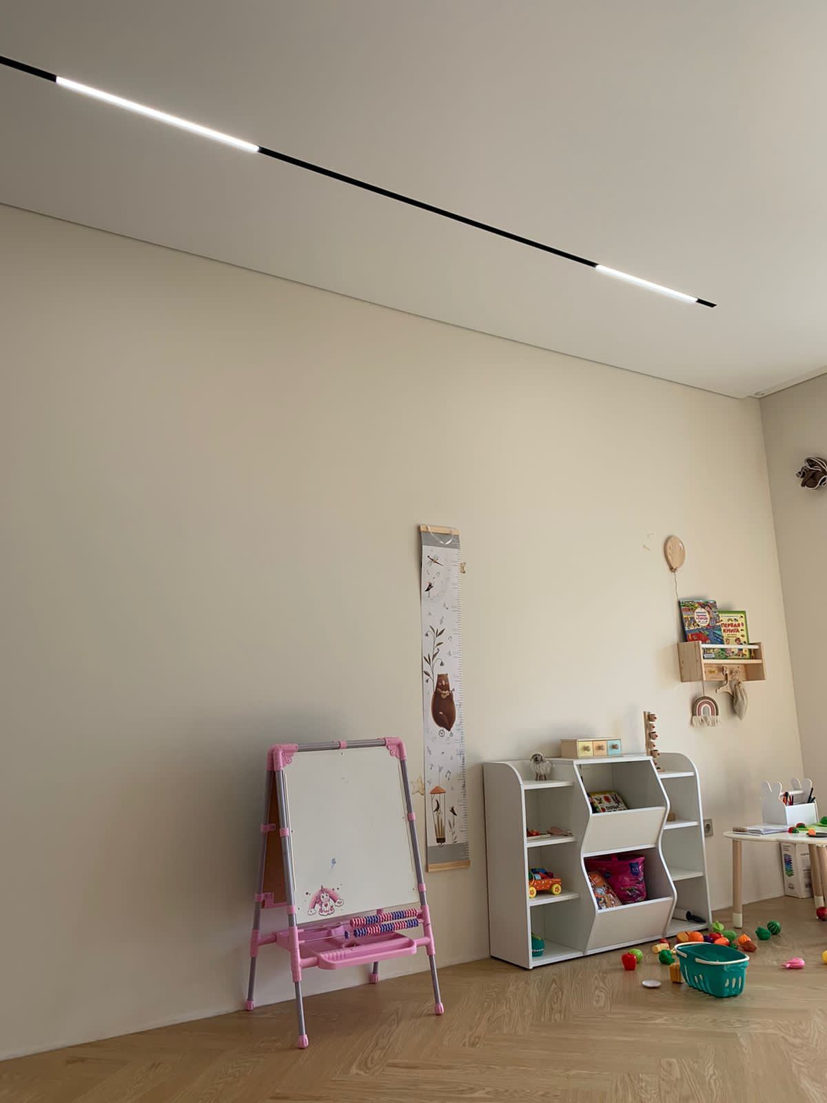Светильники по шинопроводу легко перемещаются. Вы можете в любой момент изменить конфигурацию системы, изменить расположение или добавить новые светильники самостоятельно, меняя световые акценты в помещении, не прибегая к электромонтажным . Узкая видимая световая линия всего 22-23 мм.