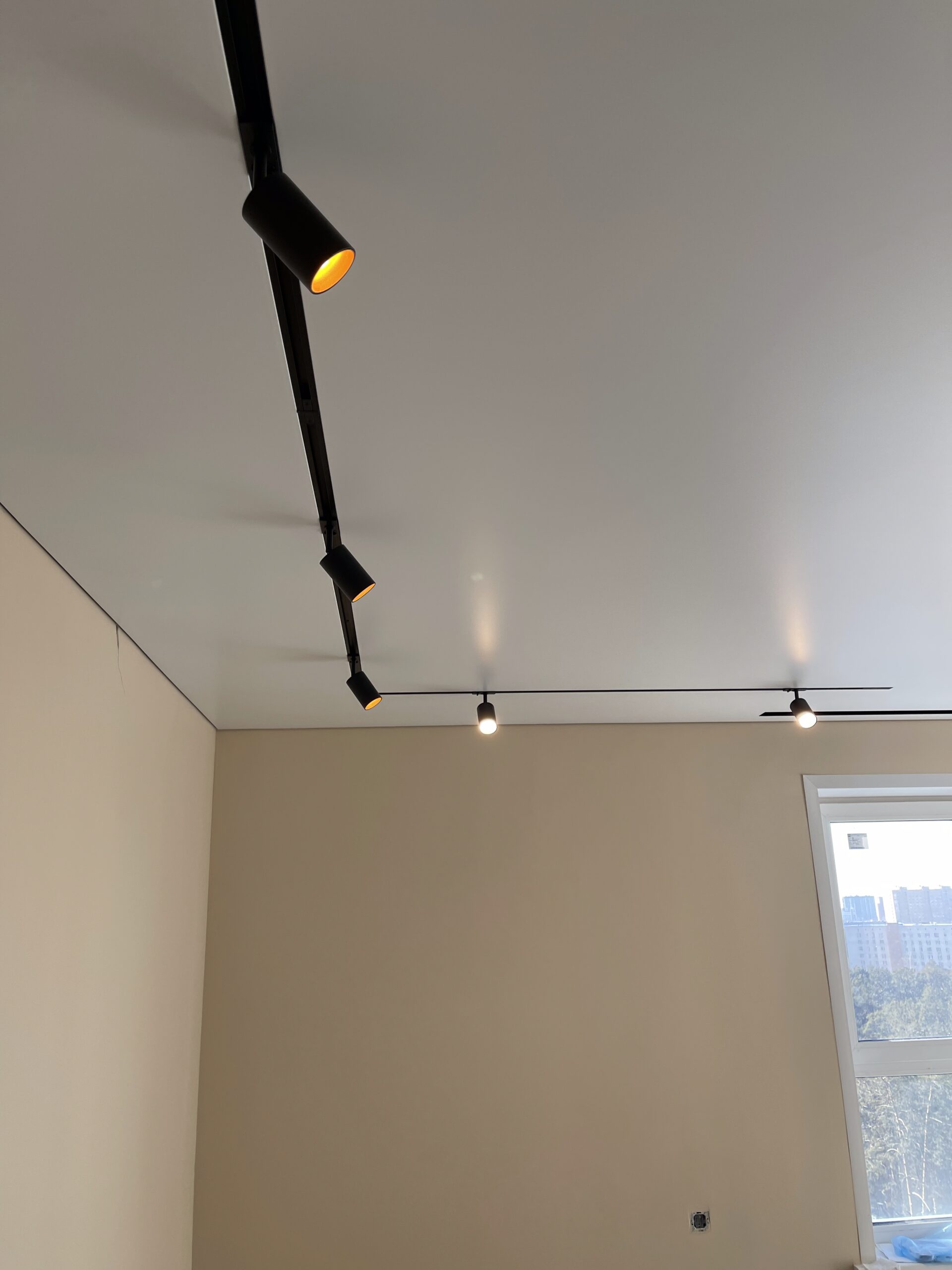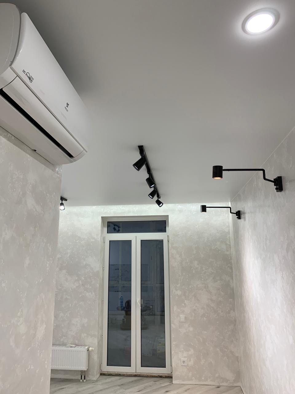 Шинопровод можно интегрировать в плоскость натяжного потолка, или же использовать накладной тип крепления.