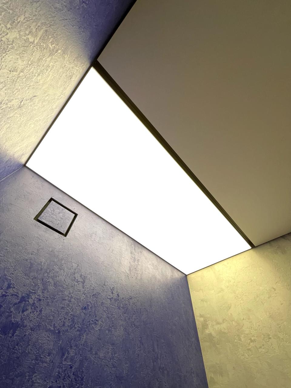 Светованна или световой потолок — это решение, когда само полотно натяжного потолка служит основным источником освещения. Вы просто нажали на клавишу выключателя и наслаждаетесь мягким комфортным освещением. Минимализм в чистом виде.
