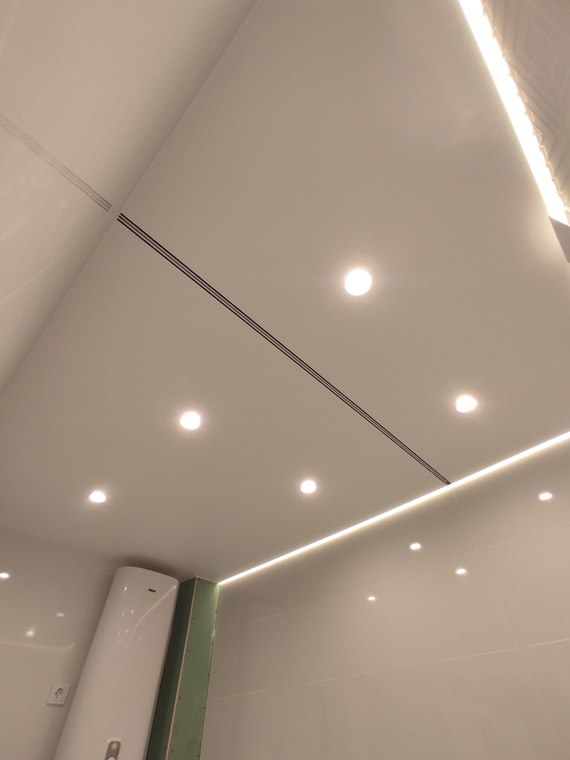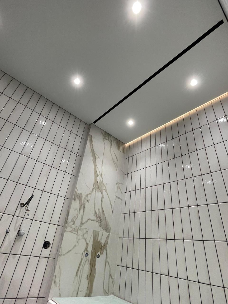 Прекрасное решение для ванной комнаты. Больше не нужно ставить штанги и стеклянные перегородки. Для ценителей минимализма и практичности – то, что нужно! Карниз утоплен в плоскости потолка, может быть в белом и черном цветах. Заказать шторку нужной длины сейчас можно не только в салонах штор, но и на маркетплейсах.