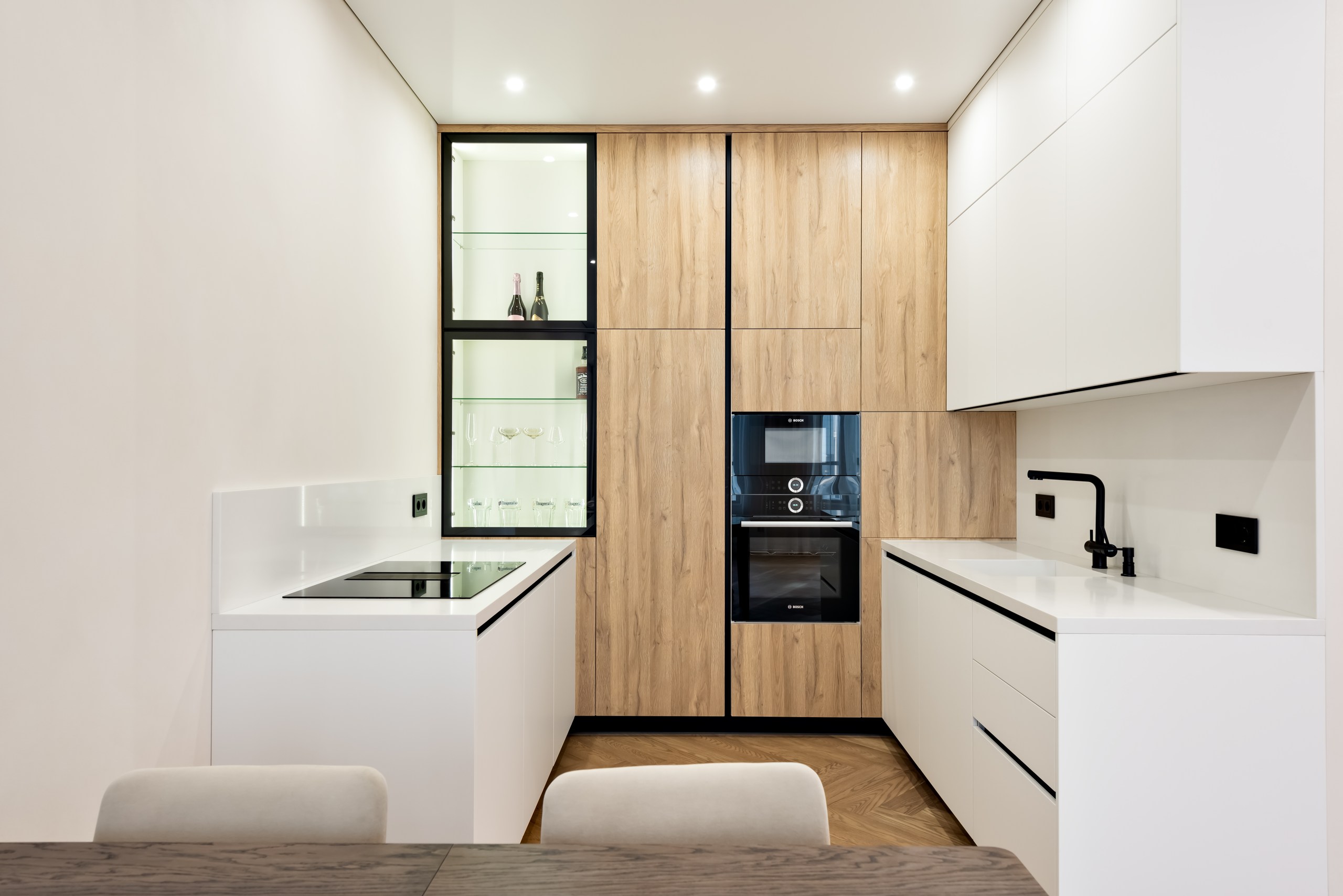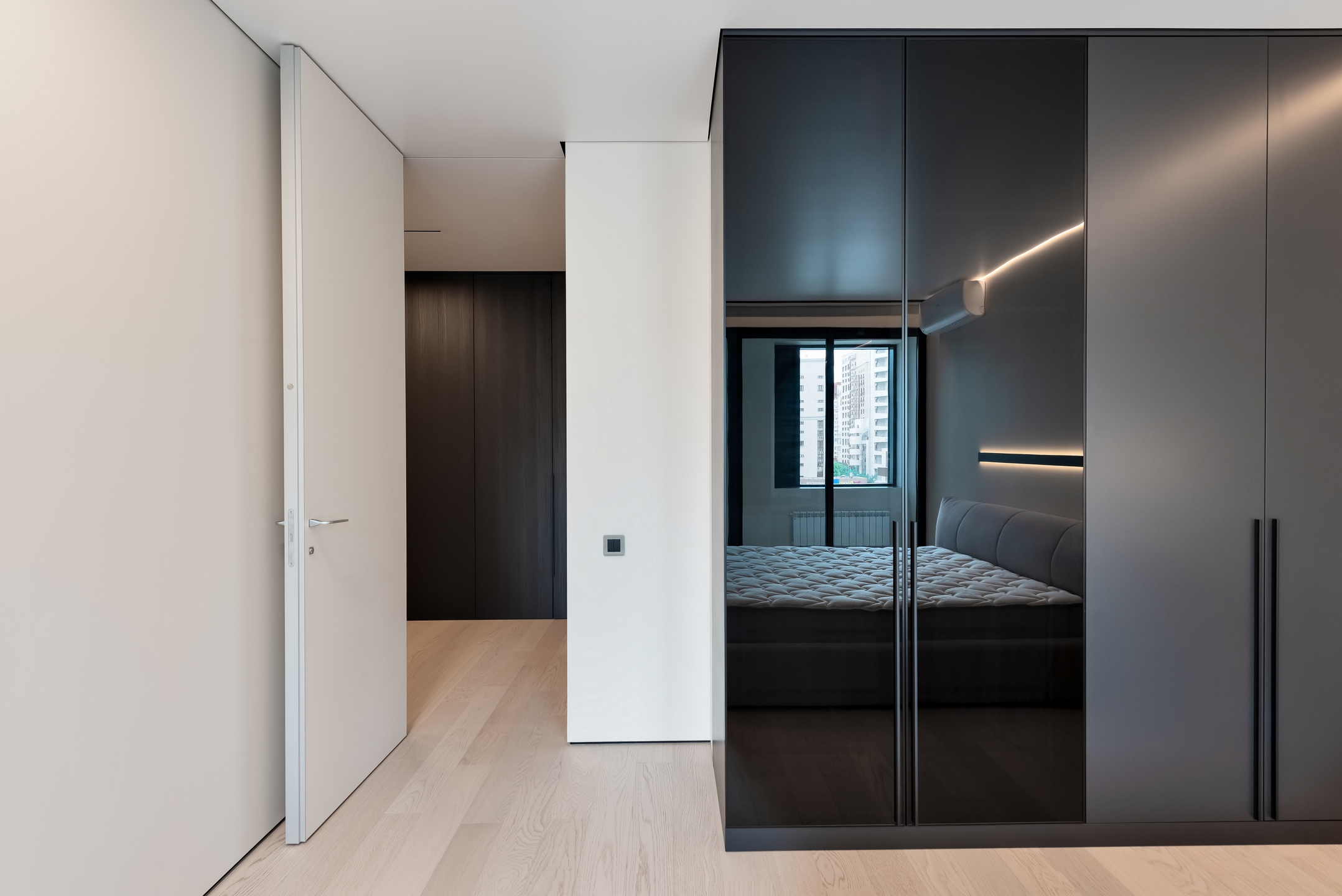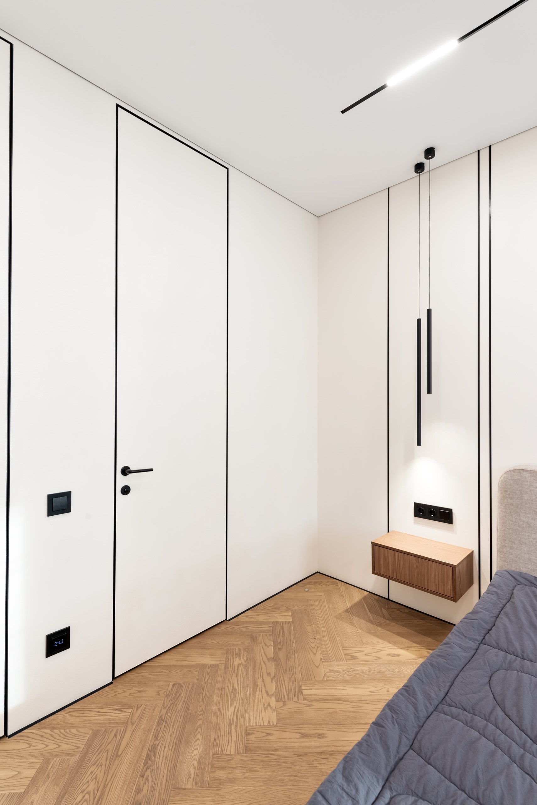 - Между стеной и потолком формируется аккуратный теневой зазор, не требующий дополнительных вставок или багетов.