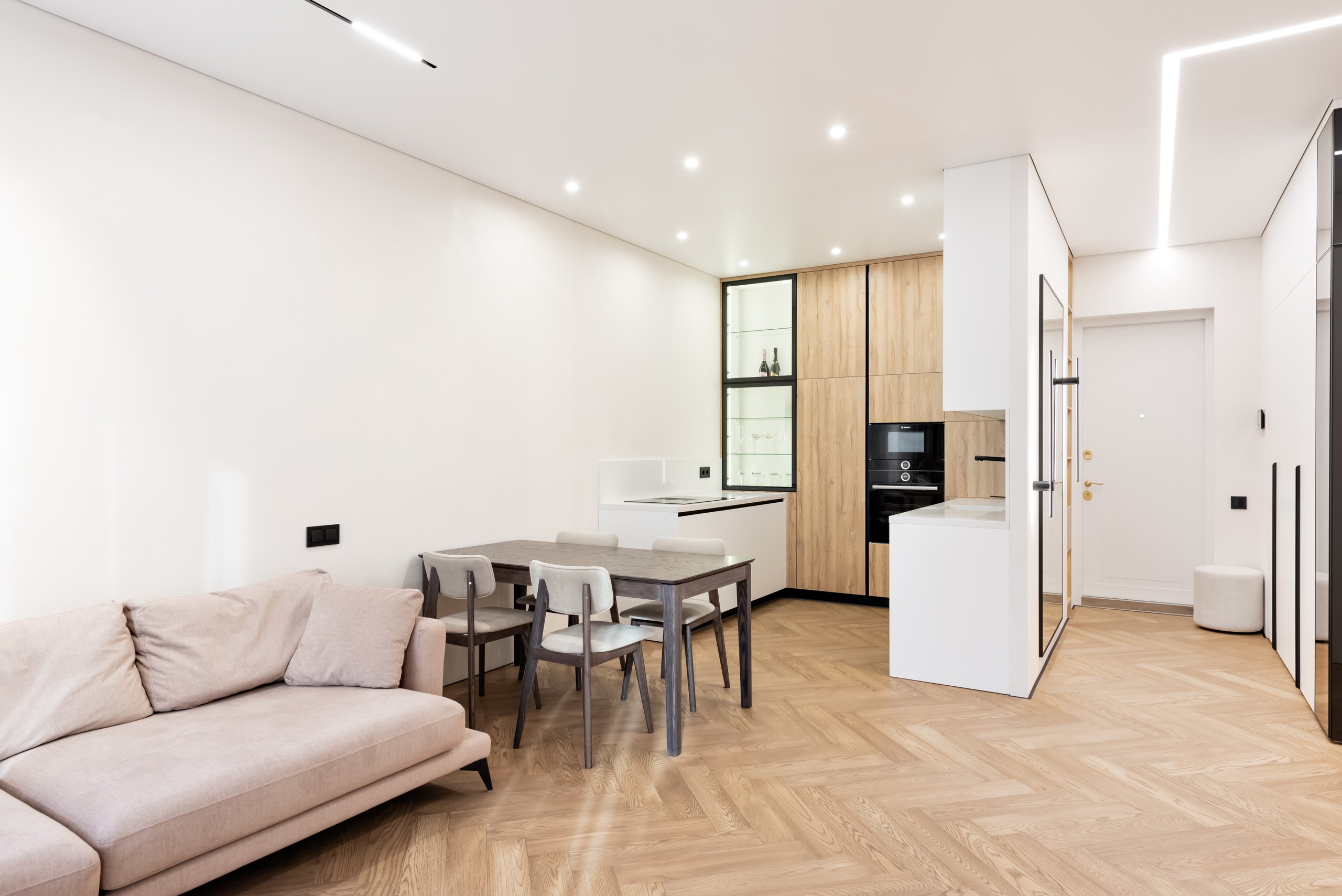 - Отсутствие плинтусов и вставок облегчает уход и делает интерьер лаконичным.