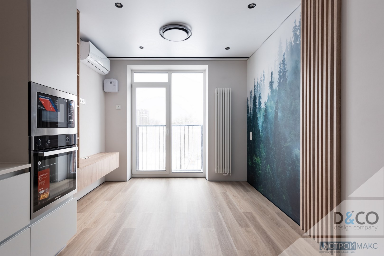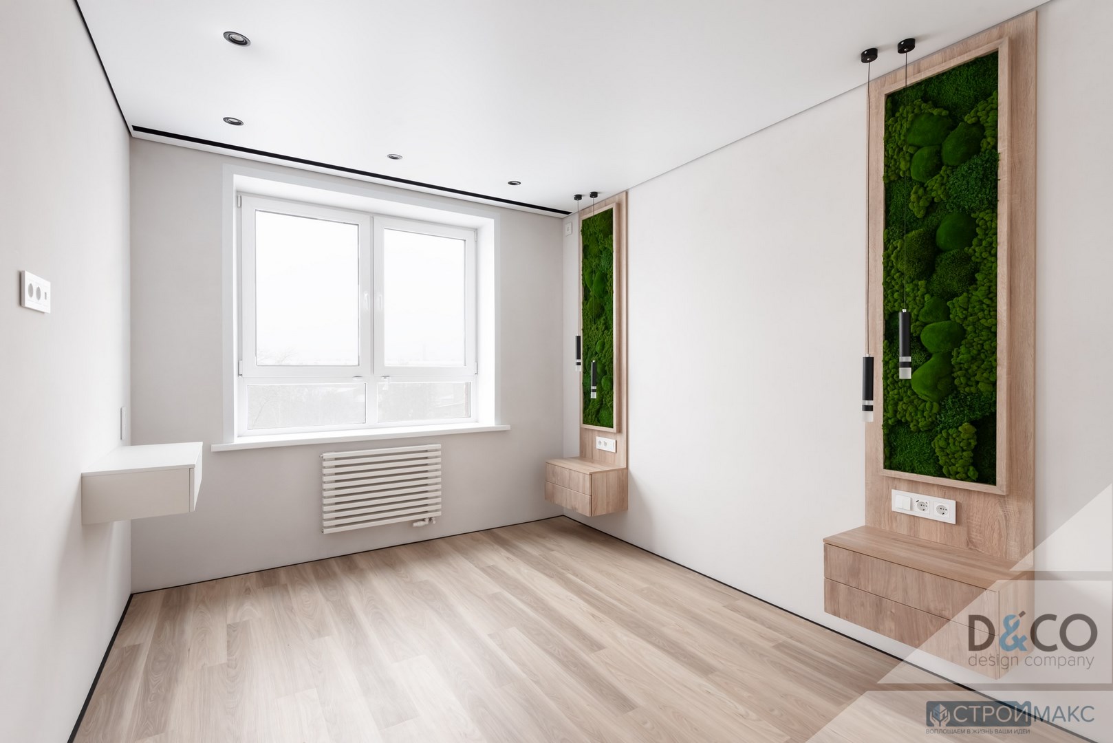 - Эффект затемнения по периметру визуально увеличивает помещение и скрывает мелкие недостатки стен.