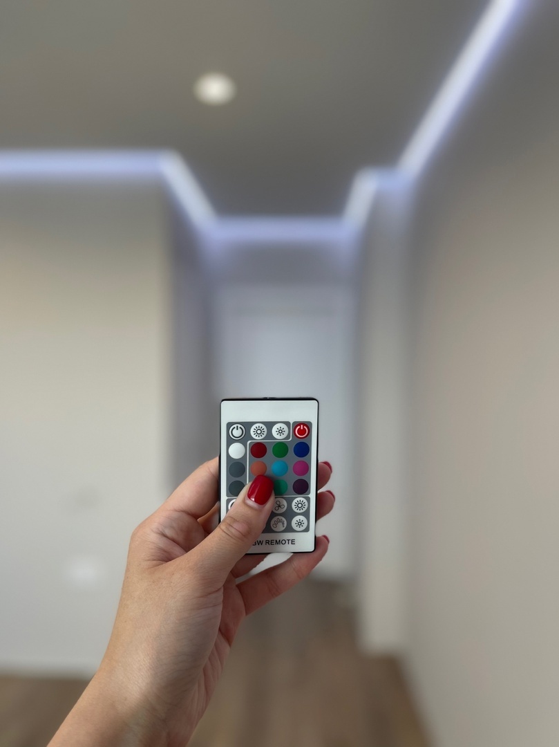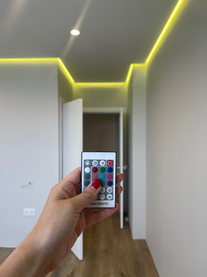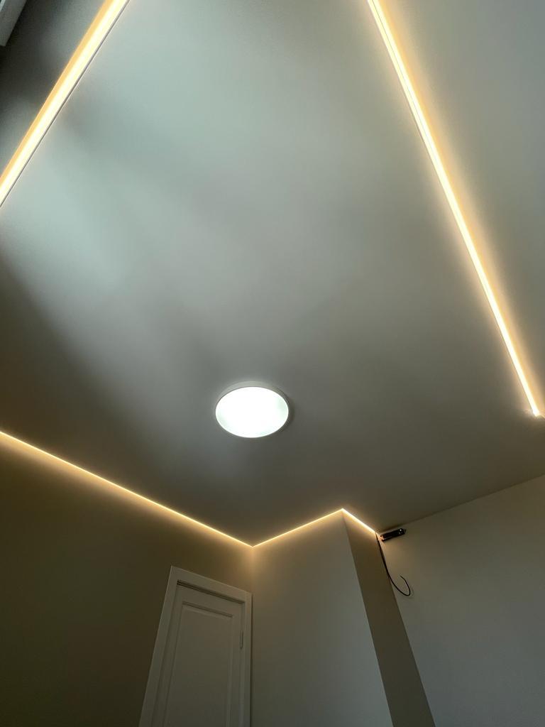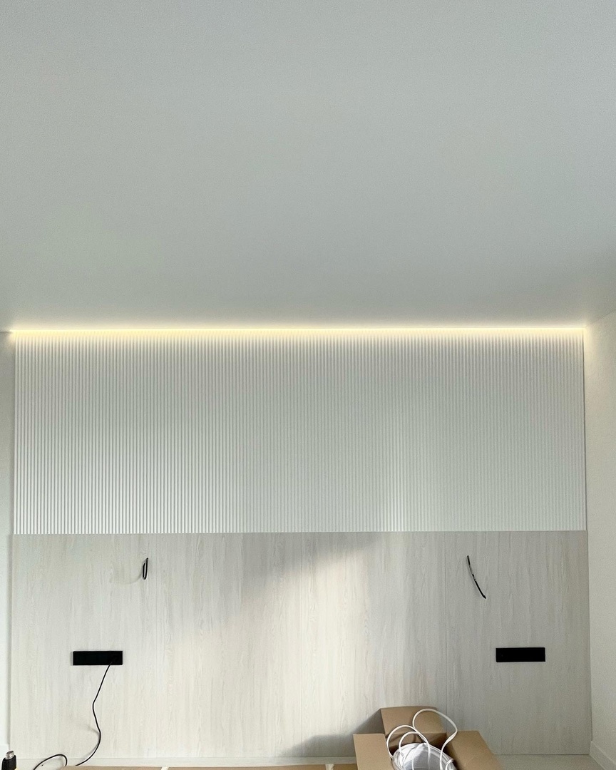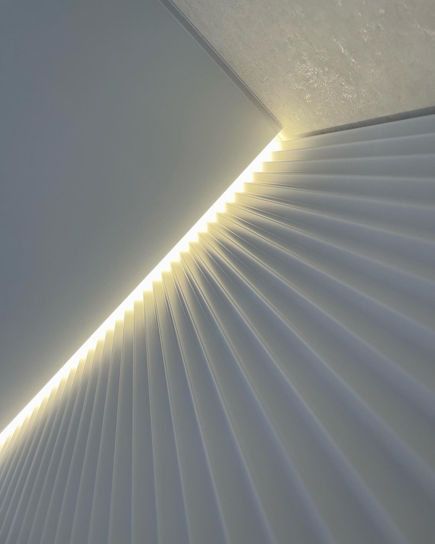 В проектах мы часто комбинируем эти два вида профилей, чтобы подсветить часть стены, панно, рейки либо 3Д панели.