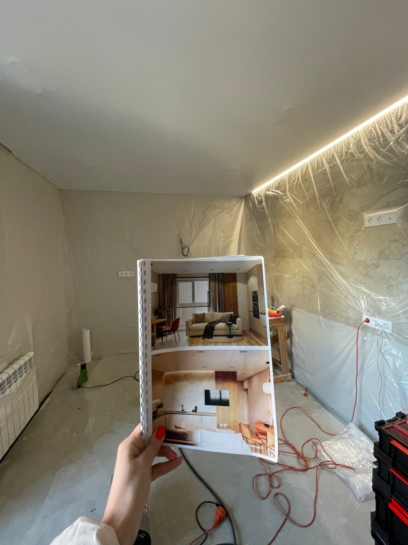 Реализуем потолки по дизайн проектам. Если его такового нет, с удовольствием поможем проработать план потолка и освещения 🙂
