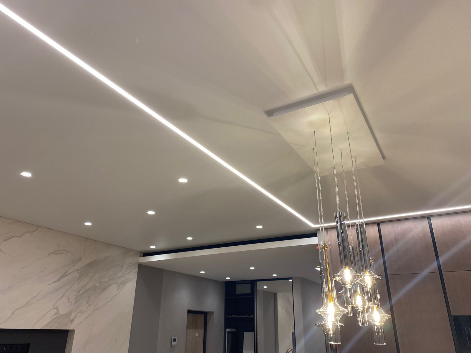 При слове «люстра» многие заказчики представляют что-то из 90х: тяжелую конструкцию с канделябрами и лампами Ильича. Сегодня люстру в проектах часто называют подвесным либо потолочным светильником.