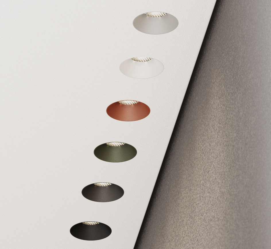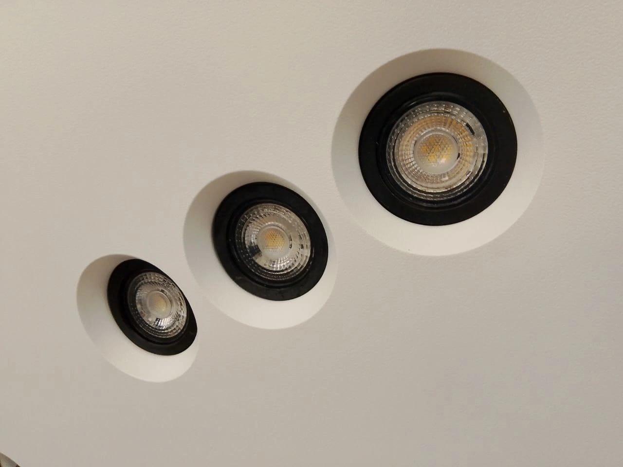 Если хочется контраста, советуем рассмотреть черные матовые светильники. Они могут быть встраиваемыми в плоскость потолка, или же иметь накладной способ установки.