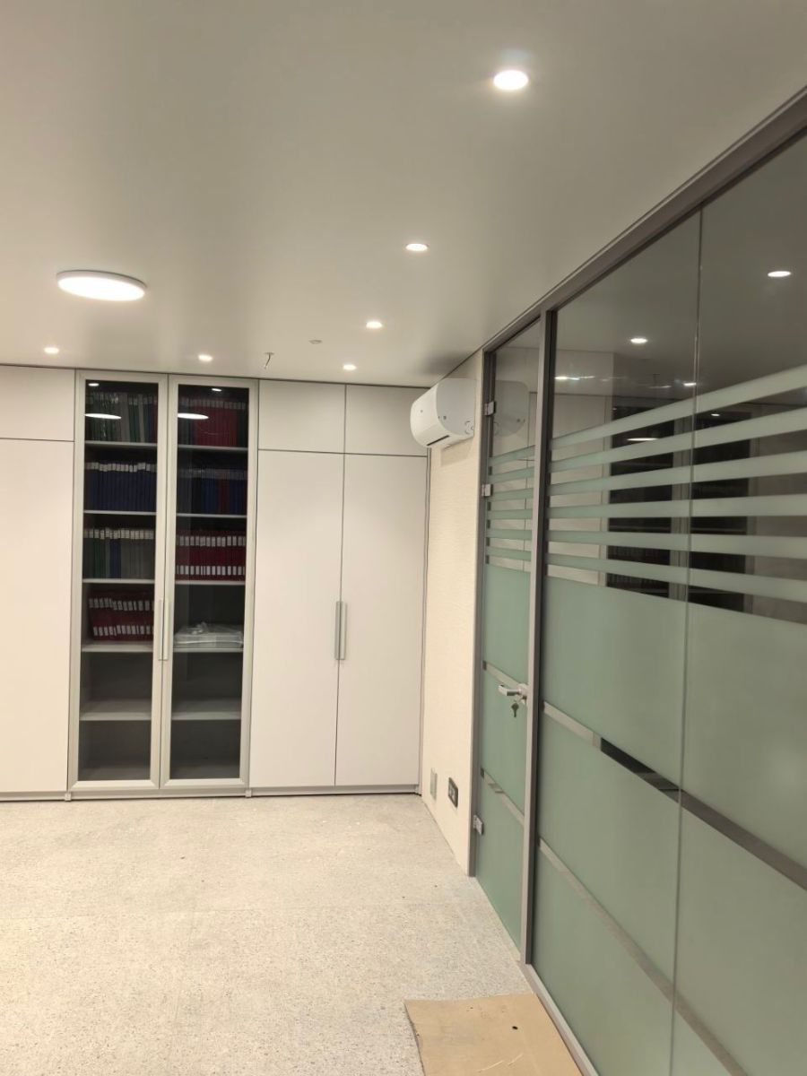 На фото именно такие современные и безопасные потолки в офисе нотариуса.