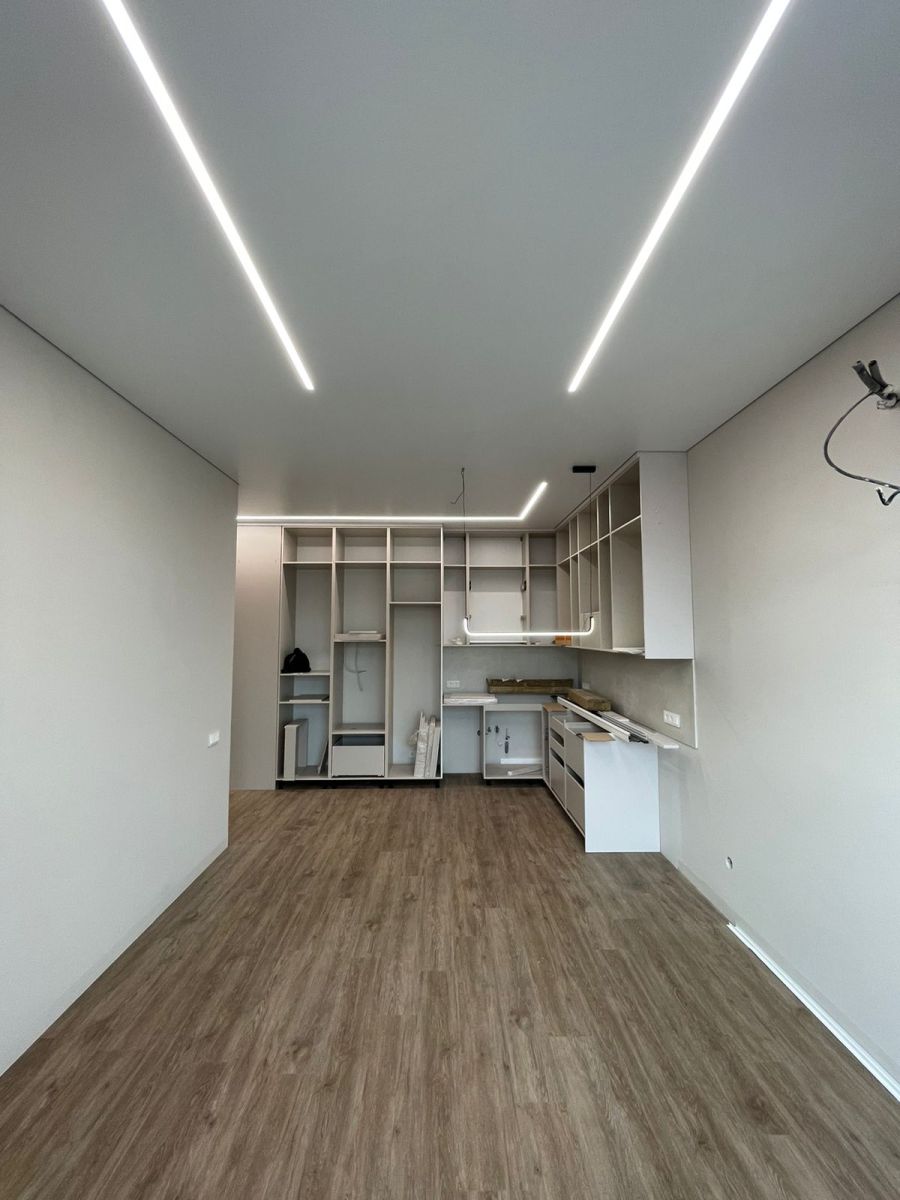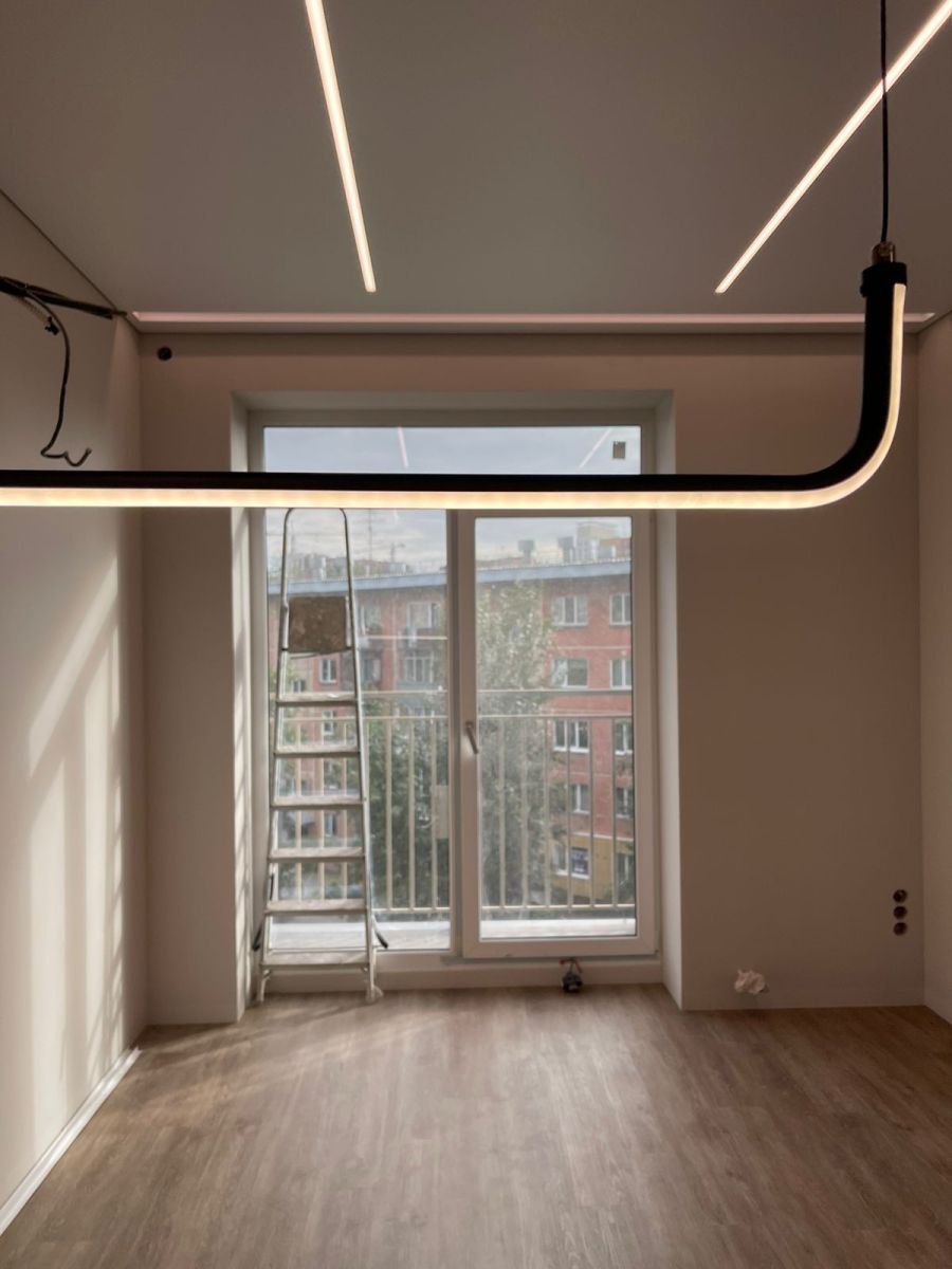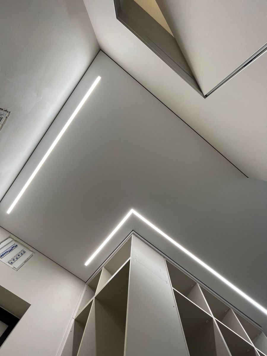 Наша команда реализовала проект в ЖК Наследие на премиальном теневом профиле EuroKRAAB. В качестве освещения применены световые линии производителя Arlight.